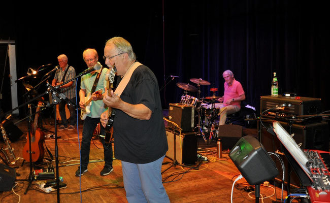 Die Jungs von Still Crazy Five bei der Vorbereitung und beim Tunen mit Hilfe des Tontechnikers.