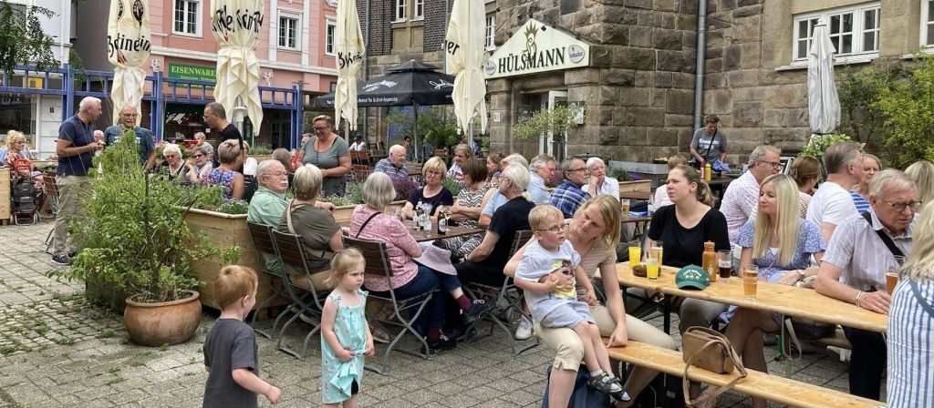Knapp 2 Wochen bevor die Cranger Kirmes startete lud Hülsmann-Wirt Sabby wieder zum Warm-Up vom 19. bis zum 21.7. vor der Hülsmann Brauerei ein, bei trockenem Wetter und angenehmen Temperaturen und wie immer umsonst und draußen und wie in den Vorjahren an allen drei Tagen mit viel Live-Musik.